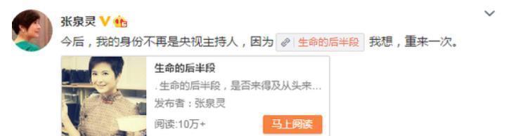 更何况,当时的张泉灵已经在央视站稳脚跟,手握《焦点访谈》等重磅栏目的主持工作。是观众公认的资深新闻人,这样的职业节点选择离开,难免让人心生疑惑。很快没多久,张泉灵就通过一篇题为《生命的后半段》的长微博,正式公开证实离职央视的消息。